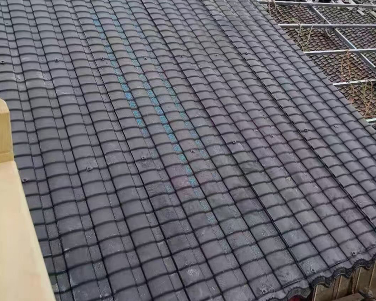 03 防水自清潔 合成樹脂瓦表面細米光滑,不易吸附灰塵,具有”荷葉效應”,雨水沖刷潔凈如新,配合本廠專用防水配件,徹底解決螺絲孔滲水問題。
